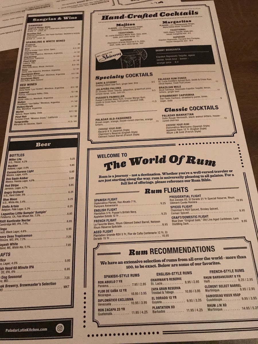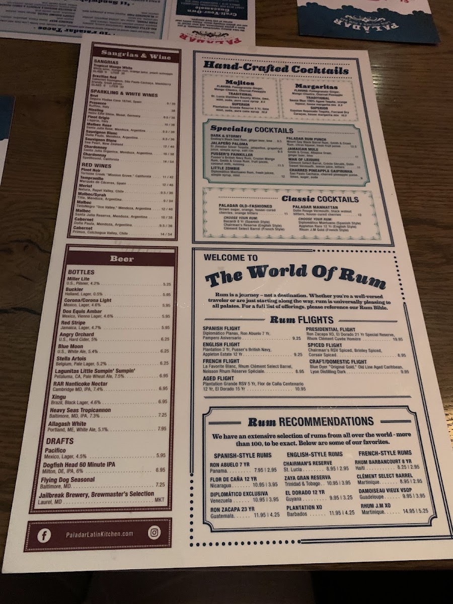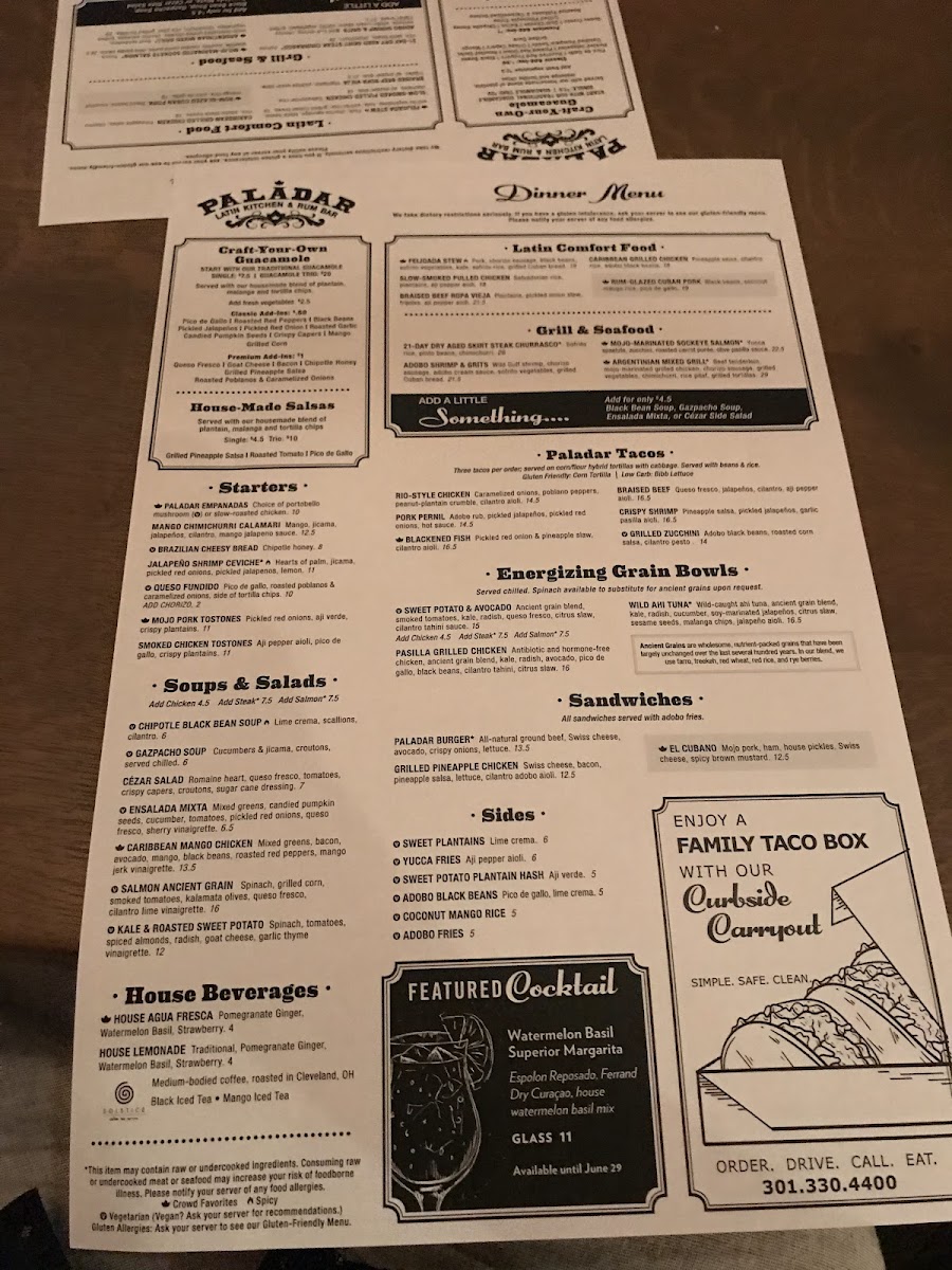 Introducing the Menu at Paladar Latin Kitchen, Gaithersburg